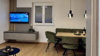 Abgerundet wird das Konzept durch ein passendes TV-Element mit schwebendem Sideboard, das Küche und Wohnraum optisch verbindet. So entsteht ein ganzheitliches Raumkonzept, bei dem Design, Funktion und Wohnlichkeit perfekt ineinandergreifen – alles aus einem Guss.