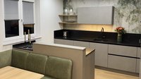 Die u-förmige Planung mit großzügiger Hochschrankgruppe schafft viel Stauraum und klare Linien. Gleichzeitig wird die Kücheninsel zum verbindenden Element im Raum. Sie dient nicht nur als Arbeits- und Kommunikationsfläche, sondern auch als stilvoller Raumtrenner zwischen Küche und Wohnbereich.