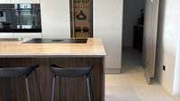 Besonders praktisch ist die versteckte Dirt Kitchen. Hier finden Kleingeräte wie Mikrowelle, Wasserkocher oder Toaster ihren Platz, und auch schmutziges Geschirr lässt sich bei Besuch schnell und unkompliziert verstauen. So bleibt die Hauptküche stets aufgeräumt und repräsentativ – ohne auf Alltagstauglichkeit zu verzichten.