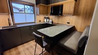Diese U-Küche verfügt über praktische Oberschränke mit integrierter Beleuchtung, die für eine optimale Ausleuchtung der Arbeitsfläche sorgen. Der integrierte Sitzbereich bietet eine gemütliche Ecke zum Entspannen und Verweilen mit der Familie oder Freunden.