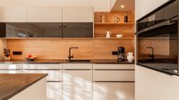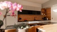 Diese ewe nanoo® in kieselgrau wurde speziell als Zweit-Einrichterküche für ein Ehepaar entworfen und überzeugt durch eine durchdachte, lineare Planung, die jedem Detail Aufmerksamkeit schenkt. Die Rückwand in sienaeiche verleiht der Küche eine warme und einladende Atmosphäre, während die Natursteinarbeitsplatte in black tea nicht nur ästhetisch beeindruckt, sondern auch höchste Funktionalität verspricht.