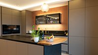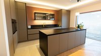 Diese ewe nanoo® zeigt eindrucksvoll, wie modernes Design und echte Alltagstauglichkeit miteinander verschmelzen können. Die supermatten Fronten in lehmbraun überzeugen nicht nur optisch, sondern auch funktional: Dank Anti-Fingerprint-Beschichtung, starkem Abperleffekt und besonders reinigungsfreundlicher Oberfläche bleibt die Küche auch im täglichen Gebrauch entspannt schön.