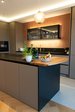 Moderne ewe nanoo® mit beleuchteten Glasoberschränken als feines Designstatement.