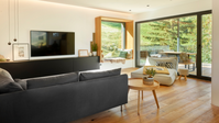 Ein Wohnkonzept aus einem Guss - Küche und Wohnbereich bilden eine perfekte Einheit.