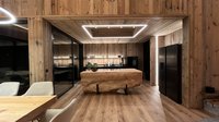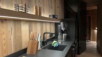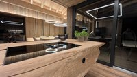 Wir präsentieren eine beeindruckende Küche in einem fantastischen Wohnraum, umgesetzt von ewe Fachhändler Sepp Gwechenberger Tischlerei. Dank der tollen Architektur wirkt der Raum trotz Holzauskleidung luftig und modern. Die supermatte onyxschwarze ewe nanoo® ist darin ein perfekter Kontrast, der sich dennoch harmonisch einfügt.