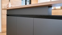 Eine kontrastreiche Küchenkombination in den supermatten Farben steinweiß und carbon metallic.