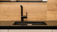 Die Arbeitsplatte ist aus Stein in der Farbe Spice Black Leather Look.