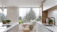 Das Highlight dieses Küchenensembles ist die gemütliche Sitzbank daneben in der Ecke unter den großen Fenstern, die aus Elementen der ewe Nuova gefertigt wurde und somit nicht nur perfekt zur Küche passt, sondern auch noch extra Stauraum bietet,
