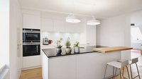 Eine klassische weiße, urbane Küche mit edlen Arbeitsplattenmaterialien.