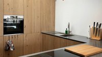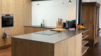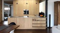 Eine Holzküche - so modern, schlicht und geradlinig, wie man es sonst nur von unifarbigen Küchen erwarten würde.