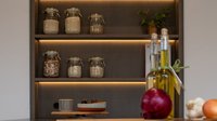 Das absolute Highlight dieser Küche ist das Wandregal mit integrierter Beleuchtung, die für ein besonders wohliges Gefühl in der Küche sorgt.