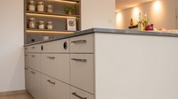 Hier wurde durch unseren ewe Fachhandelspartner Schweier eine FM Nordkamm kombiniert mit dem Küchenmodell ewe nanoo® geschaffen. Die Schränke im Landhausstil haben den Farbton steineiche, während die ewe nanoo® Oberfläche der Kücheninsel die Farbe lehmbraun aufweist. Die matte Arbeitsplatte in ceramic layla verschmilzt mit dem modernen Farbton der Kücheninsel.