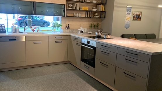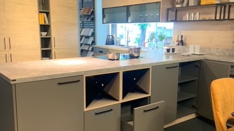 Abverkaufsküche ewe nanoo® / Sintesa in basaltgrau / kastanie in folgender Ausführung: