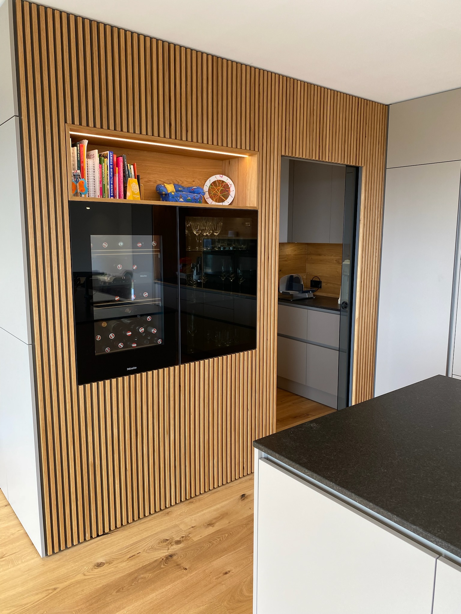 Sekundärbeleuchtung in der Küche dient dazu, einzelne Bereiche hervorzuheben und für spezifische Aktivitäten gezielt zu beleuchten. Ein gutes Beispiel hierfür sind Leuchten über der Kücheninsel, die mit die blendfrei das Licht direkt nach unten auf die Arbeitsfläche lenken. Ein gutes Beispiel dafür ist die Lichtbrücke, die den German Design Award gewonnen hat. Dies schafft eine fokussierte Beleuchtung, die die wichtigsten Koch- und Vorbereitungsbereiche in der Küche optimal ausleuchtet.