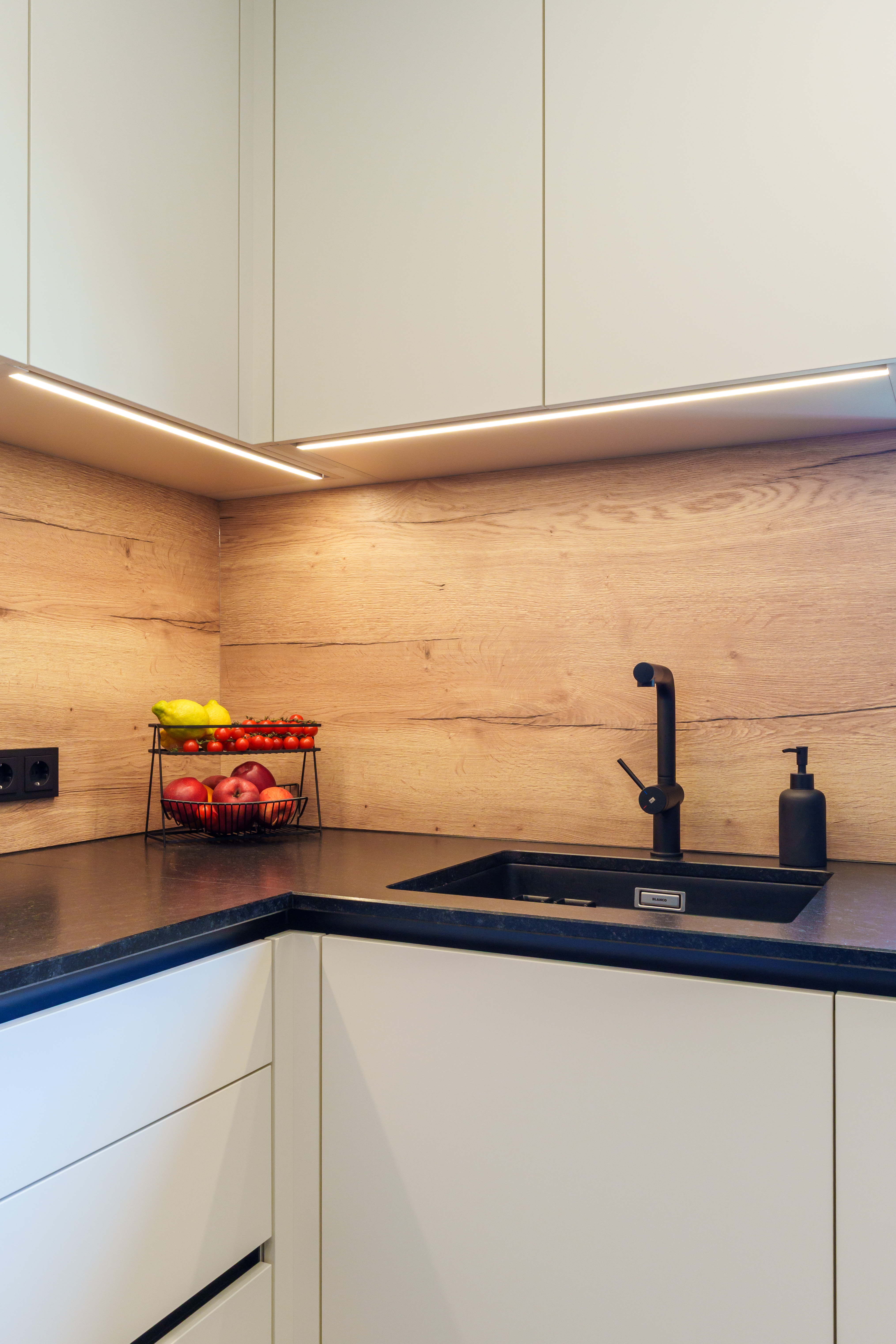 Die Arbeitsbeleuchtung in der Küche ist ein wichtiger Aspekt in Bezug auf Sicherheit und Komfort beim Kochen. LED-Beleuchtung bietet hierfür eine effiziente und effektive Lösung. Unterbauleuchten oder LED-Leisten, die unter den Oberschränken montiert werden, sind ideal, um einen schattenfreien und hellen Arbeitsplatz zu schaffen. Diese Lichtquellen erhellen die Arbeitsfläche direkt und minimieren so das Risiko von Verletzungen, die durch schlechte Sichtverhältnisse beim Kochen entstehen können.