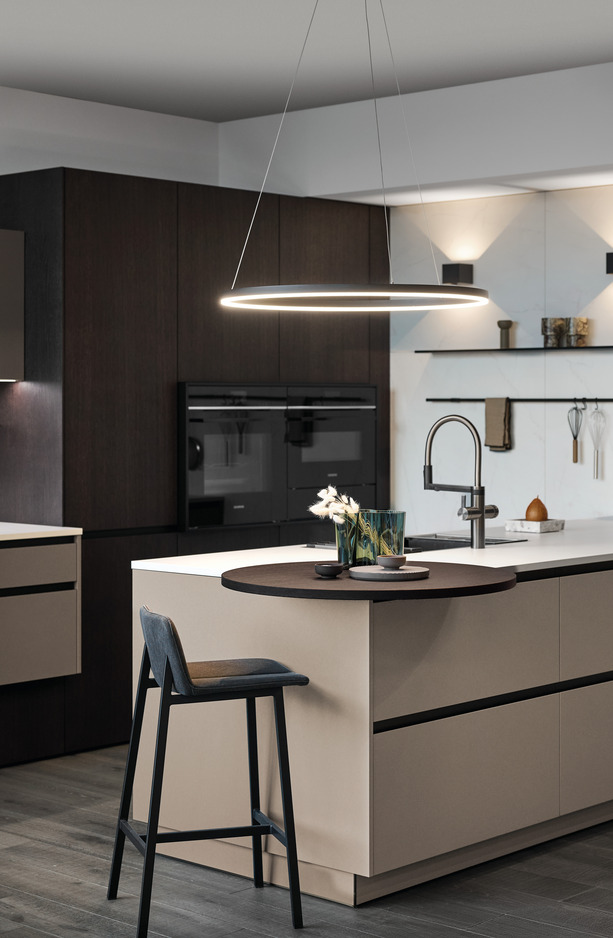 Wir bei ewe lieben Linienführung. Deshalb zieht sich die horizontale Betonung der GL30 konsequent durch die ganze Küche. Egal ob bei der Geschirrspüler-Front, beim Wandanschluss oder in der Ecke: Keine Unterbrechungen, keine Kompromisse – einfach ein fließendes Design.