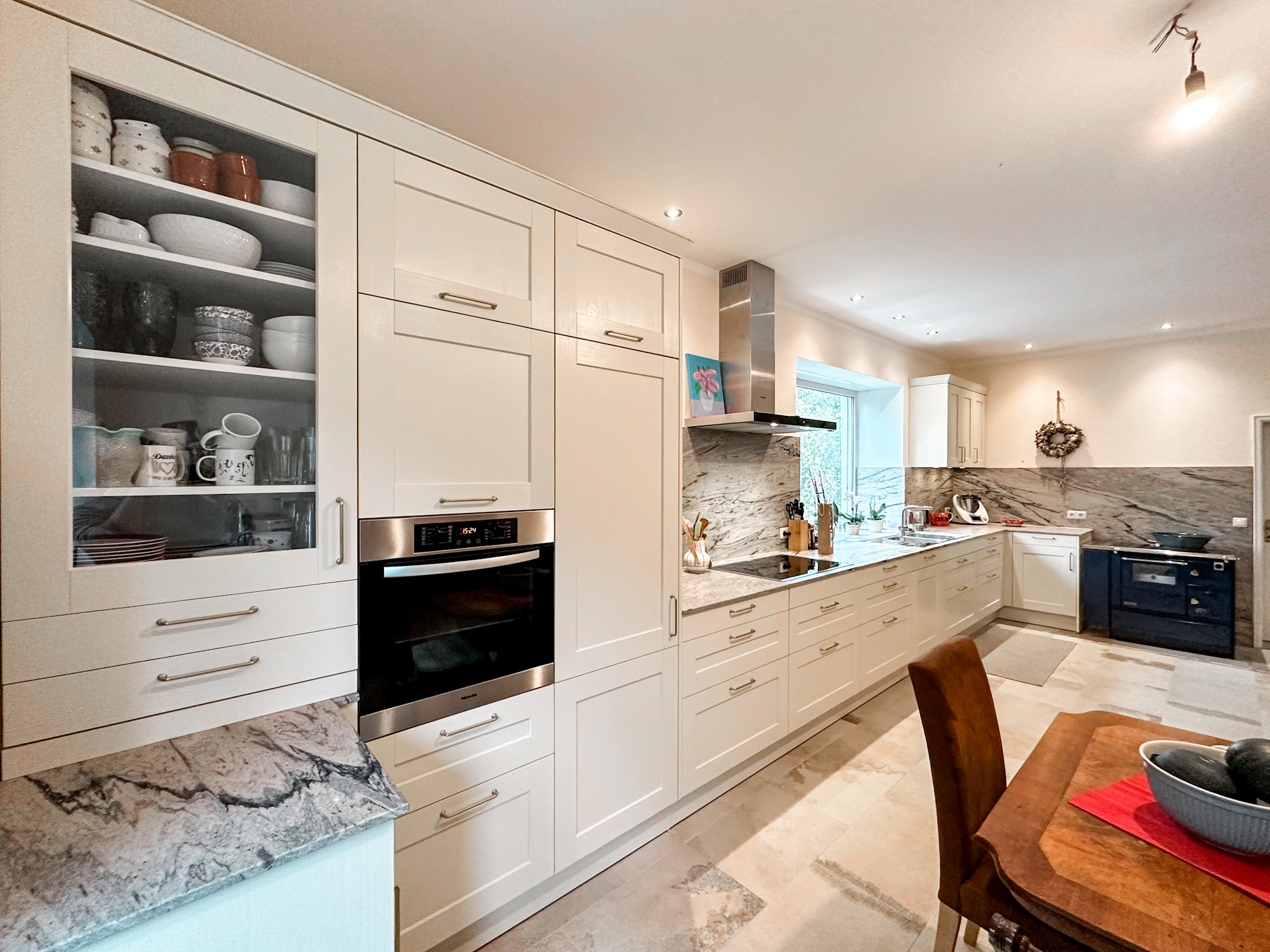 Eine Landhausküche, oder eine Küche im Cottage-Stil, zeichnet sich durch ihre Rahmenfronten aus, die sie auf den ersten Blick von modernen Küchen mit ihren glatten, schnörkellosen Fronten unterscheiden. Sie ist geprägt von natürlichen Materialien wie Holz, Stein und Keramik.