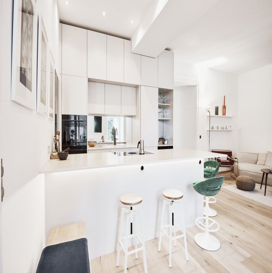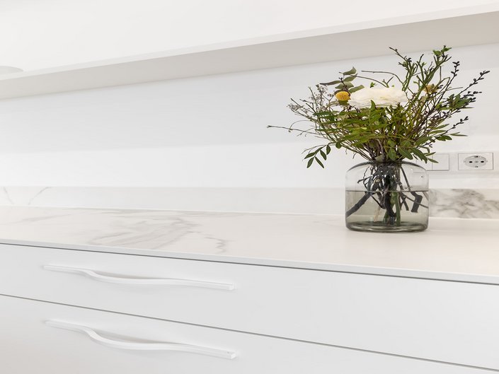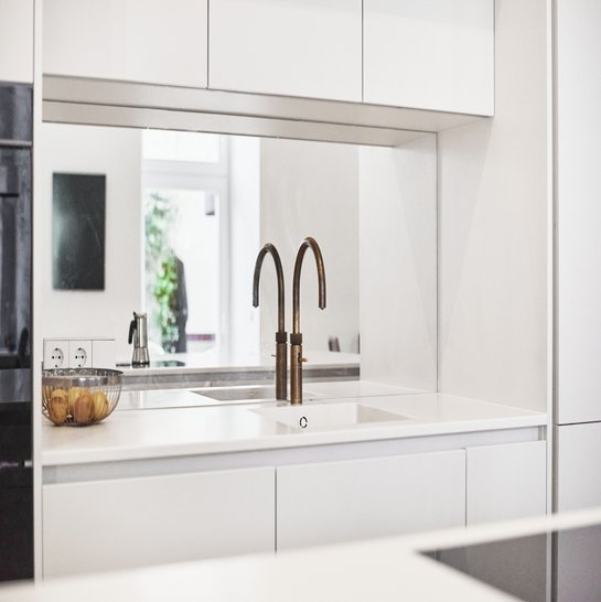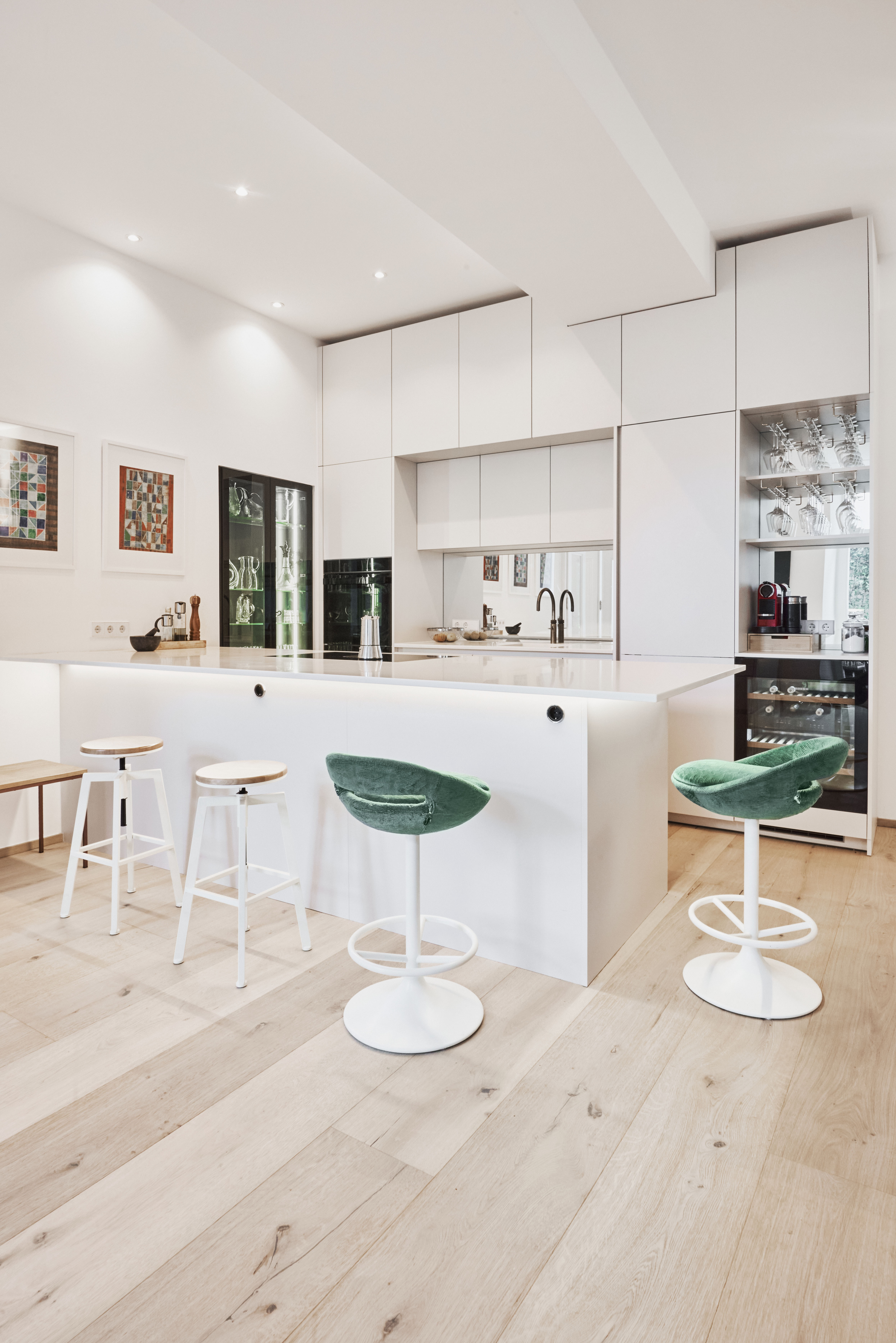 Diese Gestaltung lässt Ihre Küche größer wirken, strahlt Ruhe aus und bleibt dabei immer stilvoll. Außerdem lässt sie sich superleicht mit Ihrer Lieblingsdekoration kombinieren.