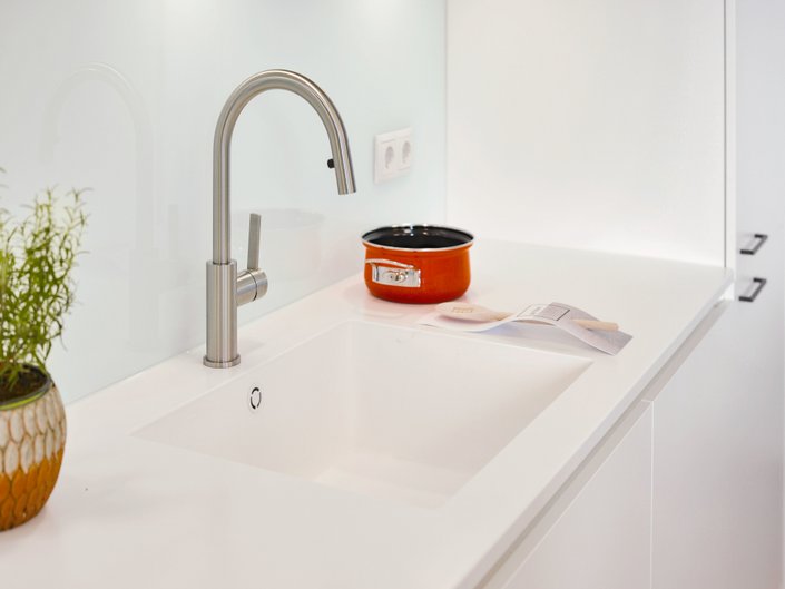 | Zeitlose Eleganz: Mit einem Ton-in-Ton-Design liegen Sie immer im Trend. Solche Küchen wirken nicht nur modern, sondern behalten ihre Schönheit auch über viele Jahre hinweg. | Pflegeaufwand bei hellen Farben: Insbesondere helle Töne können anfällig für Flecken sein und erfordern möglicherweise eine häufigere Reinigung, um immer makellos auszusehen. Eine passende Lösung dafür ist: ewe nanoo® |