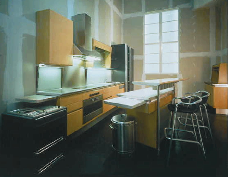1973 beginnt die Zusammenarbeit von ewe und COOP-HIMMELB(L)AU. Zusammen entwerfen sie das Küchenkonzept SOFTMOBIL, das zum absoluten Küchenhit wird. Erstmals wird hier die Küche als Kommunikationszentrum gestaltet.